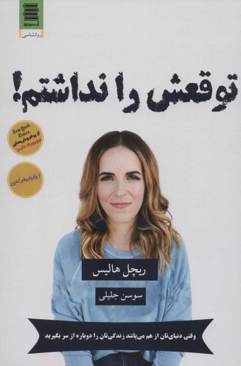«توقعش را نداشتم» عنوان کتابی است نوشتهی ریچل هالیس که نشر آرشیو روز آن را به چاپ رسانده است. نویسنده میگوید: پایان دادن به زندگی زناشویی و جدایی از پدرِ چهار فرزندم پس از شانزده سال، پایان گرفتنِ یک رابطهی هجده ساله با بهترین دوستم. شالوده و بنیان زندگی من و هر آنچه ساخته بودم در یک چشم بر هم زدن نابود شد.